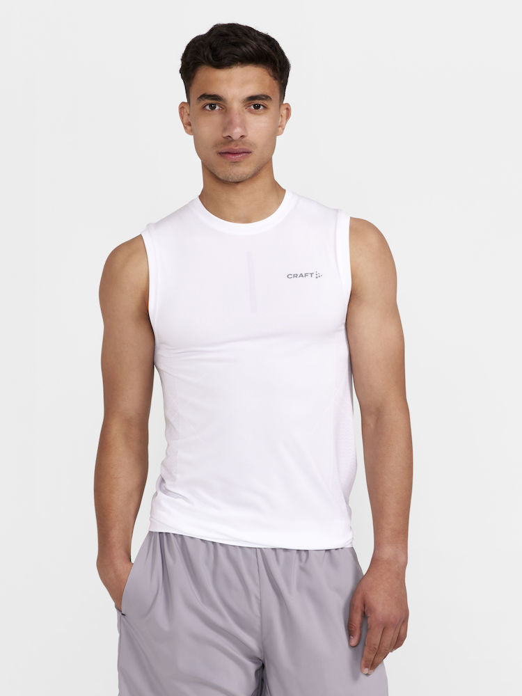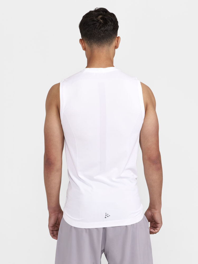 Light and cooling seamless sleeveless tee with bodymapped structure that provides excellent temperature management during high-intensity workouts.